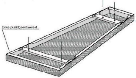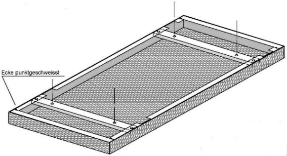 und sind allseitig C-förmig 50/25mm aufgekantet. In den Ecken