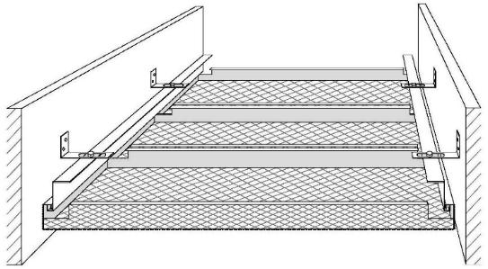 Einhängeschiene. Separate Abhängungen an die Rohdecke ist